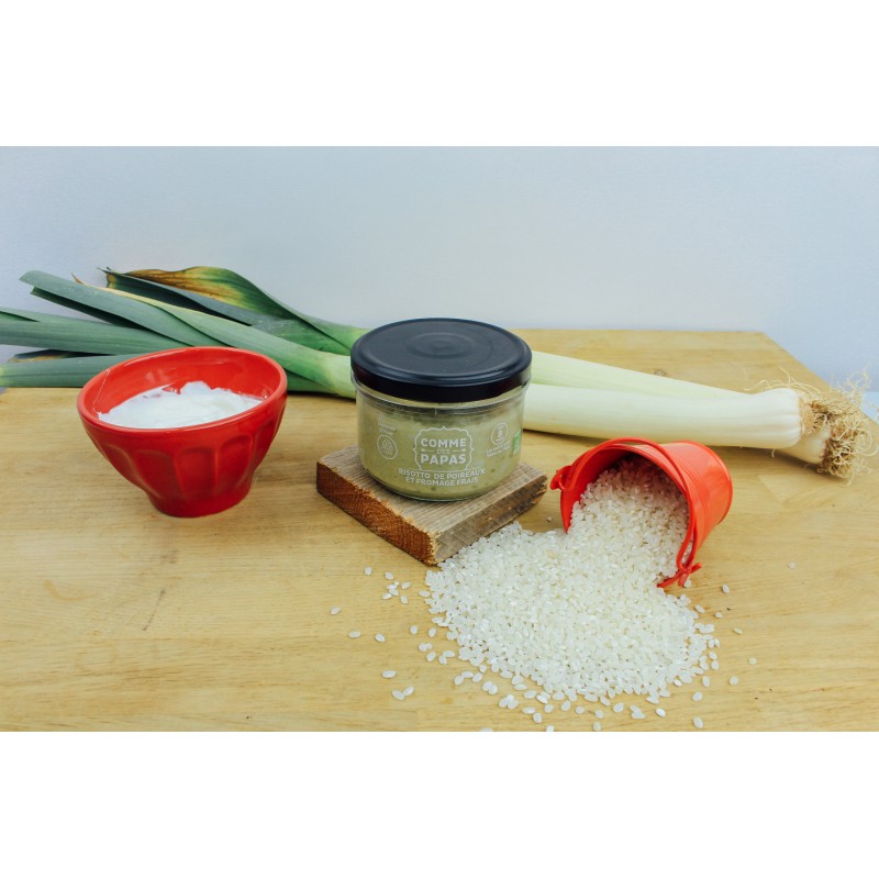 Car les parents ne sont pas les seuls à pouvoir profiter d’un bon risotto ! Les bébés aussi ont le droit à leur part de haute gastronomie. Bien entendu, notre chef a pris soin de ne pas le préparer avec du vin blanc, mais plutôt avec le jus de cuisson du poireau, un légume riche en vitamines et minéraux.